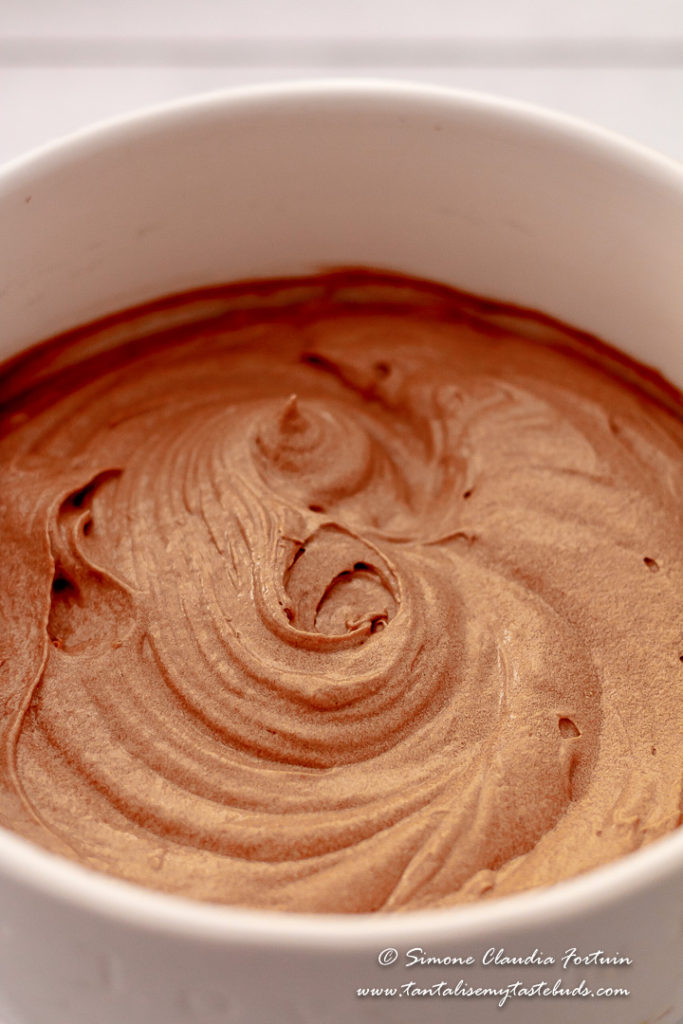 • Add the cooled melted chocolate and cream and beat again until combined.