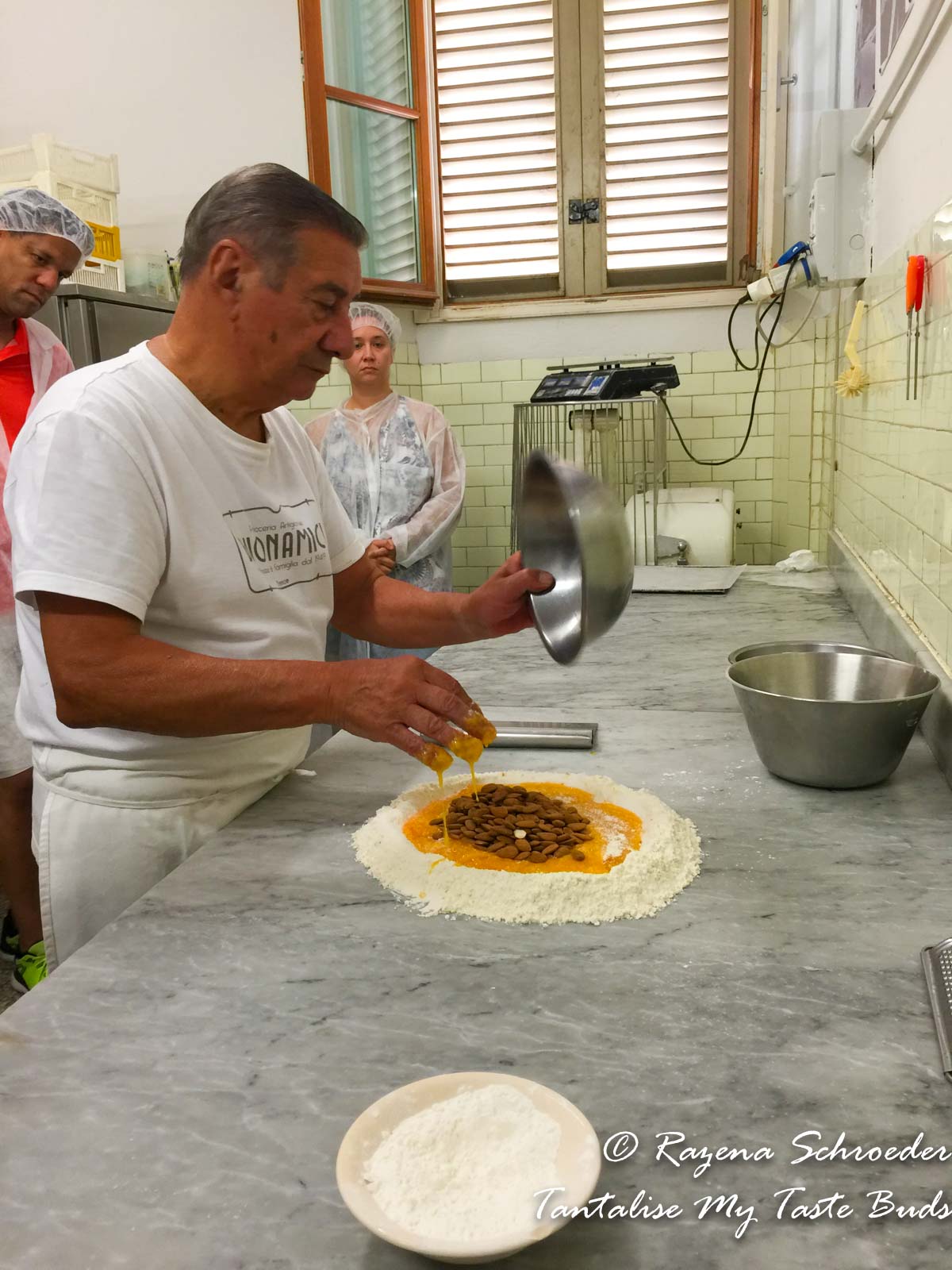 I have always loved the crispy Italian cookies sold and marketed as ‘Biscotti’ and was excited to see a Master baker at work making the cookies that are actually known as Cantucci.